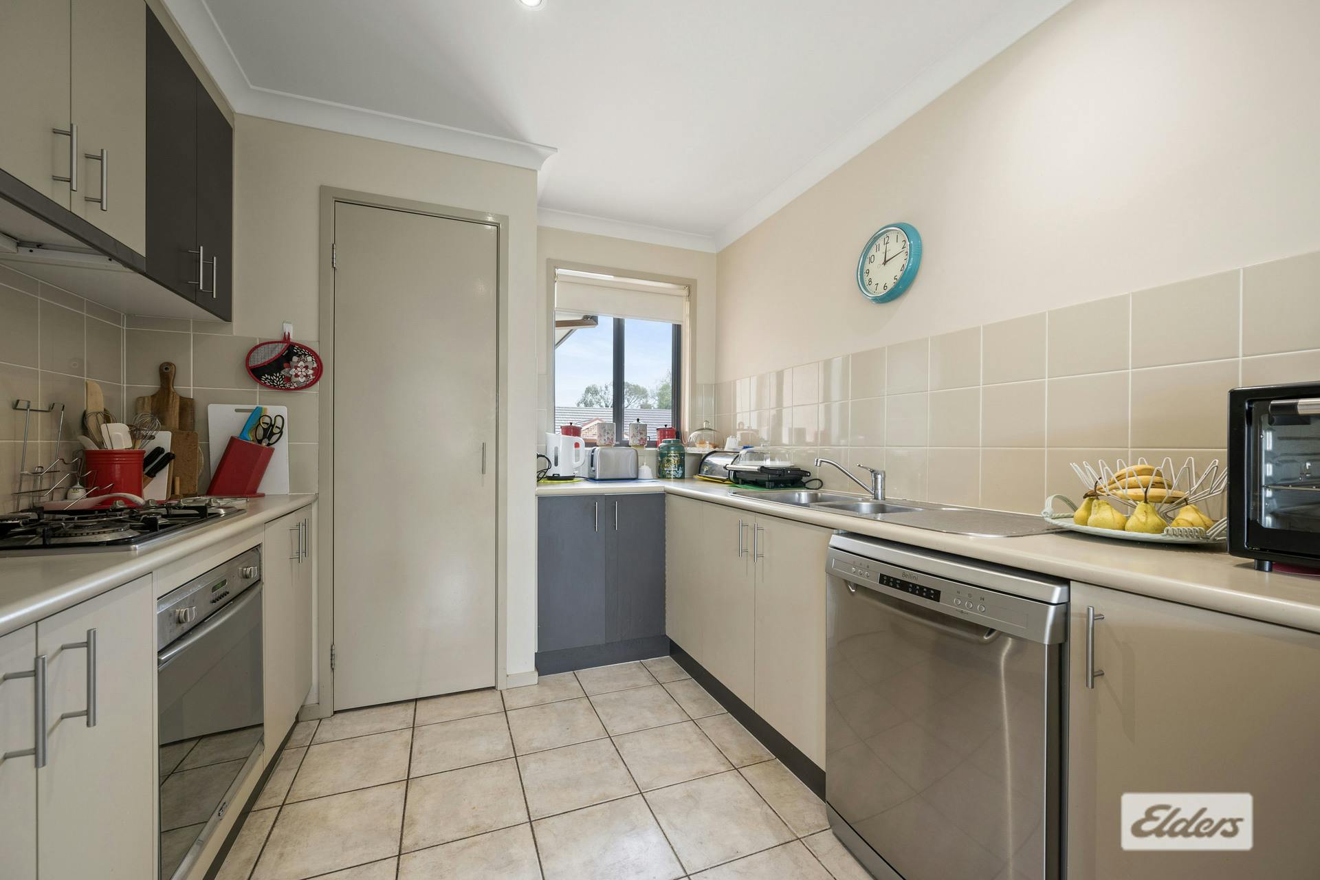 - Kitchen with gas cooktop, electric oven and dishwasher