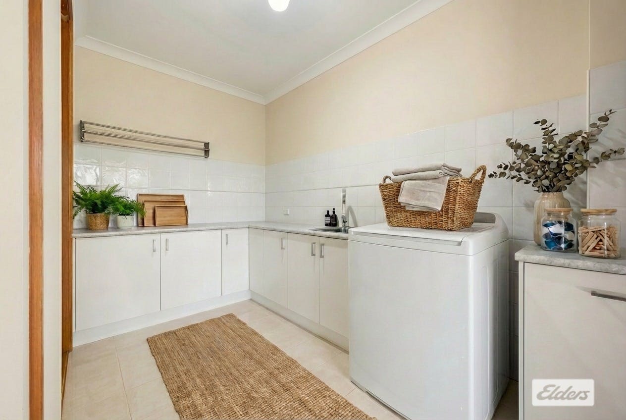 The heart of this level is the stylish 2Pac kitchen, finished with classic bevelled cabinetry, gas cooking and dishwasher, flowing effortlessly into the open-plan meals and living area. A large, practical laundry with excellent storage keeps daily life running smoothly.