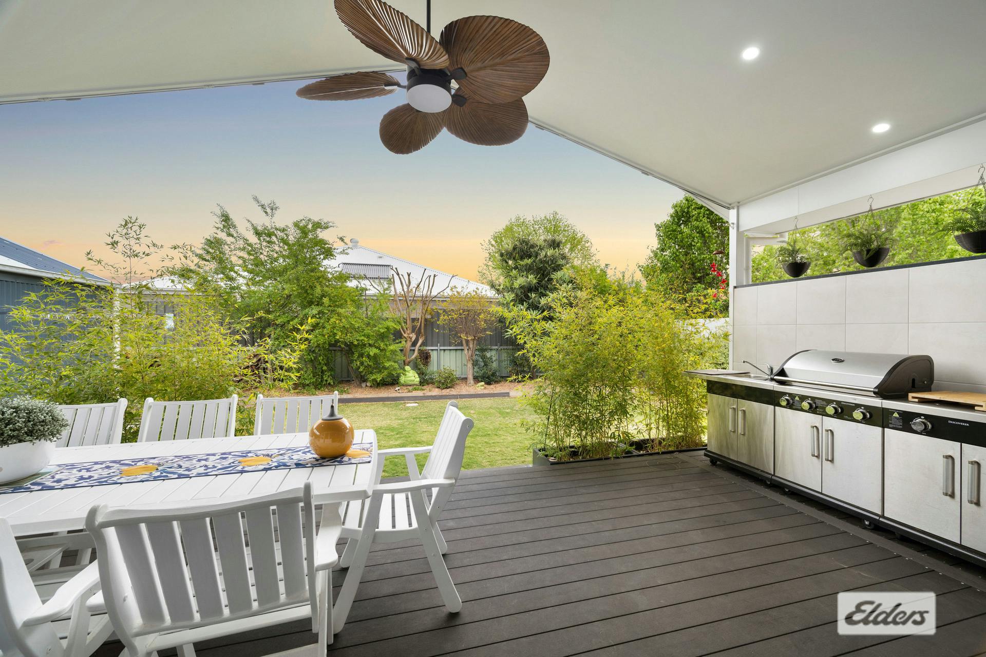 Additional features include retractable ceiling fans with lights throughout the home, large laundry with full custom cabinetry, study nook off the kitchen keeping in with the Hamptons theme, ducted refrigerated heating and cooling, and manicured lawns that frame the home beautifully.