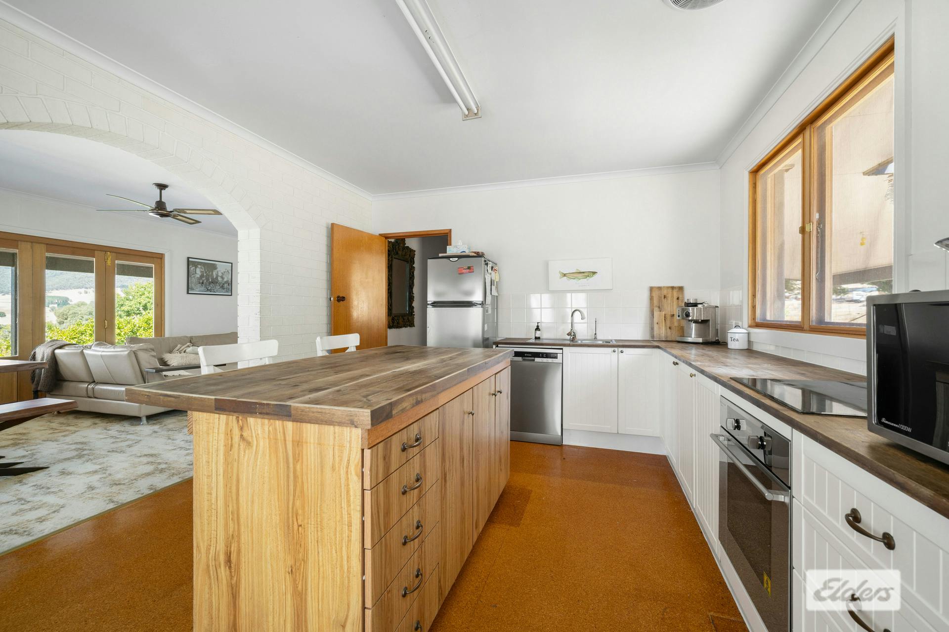 The cosy lounge room retains its original character with a slow combustion fireplace - the perfect place to unwind during the cooler months - while split system heating and cooling ensures year-round comfort. At the heart of the home, the central updated kitchen is both practical and inviting, complete with dishwasher and generous workspace for everyday living or hosting guests.